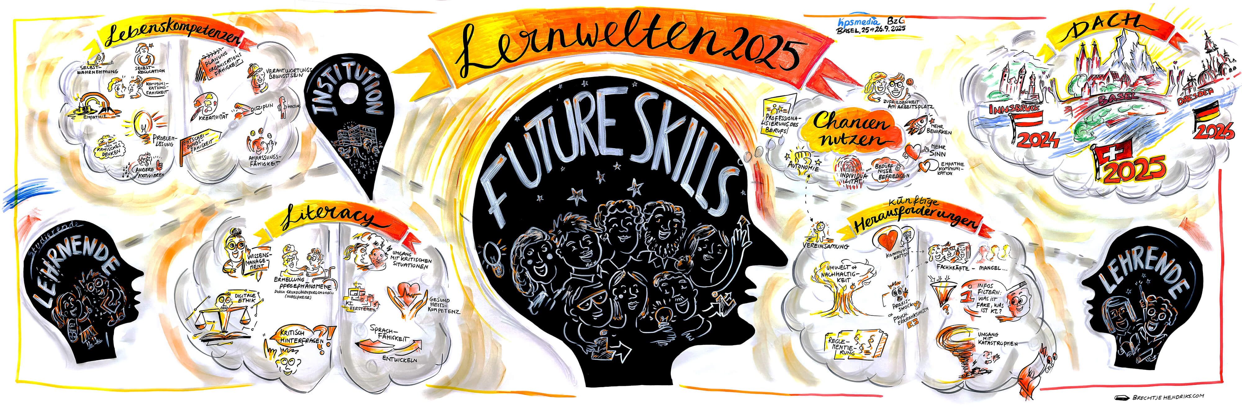Unser Dank gilt darüber hinaus auch Brechtje Hendriks, die die Lernwelten in diesem Jahr visuell begleitet und die Inhalte in einem wunderschönen Kunstwerk für alle festgehalten hat. Dieses stellen wir allen Teilnehmenden bald zusätzlich digital zur Verfügung.